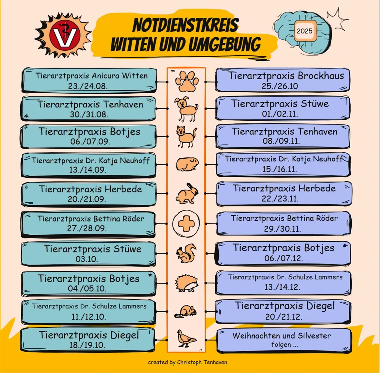 Zögern Sie nicht, im Notfall sofort einen Tierarzt zu verständigen, da ihr Tier oft nur durch schnelles Eingreifen gerettet werden kann!
