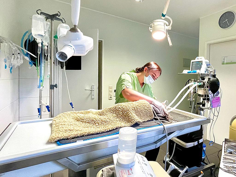 Unsere Zahnstation verfügt über einen komplett ausgerüsteten Dentalarbeitsplatz mit Polierern, Turbinenbohrern, Wasserspülung/-Kühlung und Absaugung. Die Zahnsteinentfernung erfolgt mit Ultraschall in Vollnarkose. Dabei verwenden wir auch hier zum Zwecke der Narkosesicherheit Venenkatheter und sowie eine Intubation. Eine sorgfältige Politur der Zähne schließt sich an.